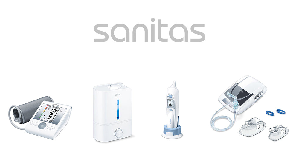 “Sanitas” is the Latin word for “health”. You can monitor your health at home with our products such as blood pressure monitors for the upper arm and the wrist, clinical thermometers, forehead thermometers as well as ear thermometers, and boost your well-being with infrared lamps and nebulisers. In addition to traditional glass bathroom scales, the range of personal bathroom scales also includes diagnostic bathroom scales, which can be used to determine body fat and body water content, for example, in addition to weight.