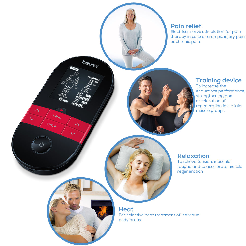 - Beurer EM 59 Digital TENS/EMS Device): Beurer TENS / EMS Electrostimulation Unit with Heat Function: 4-in-1 Device