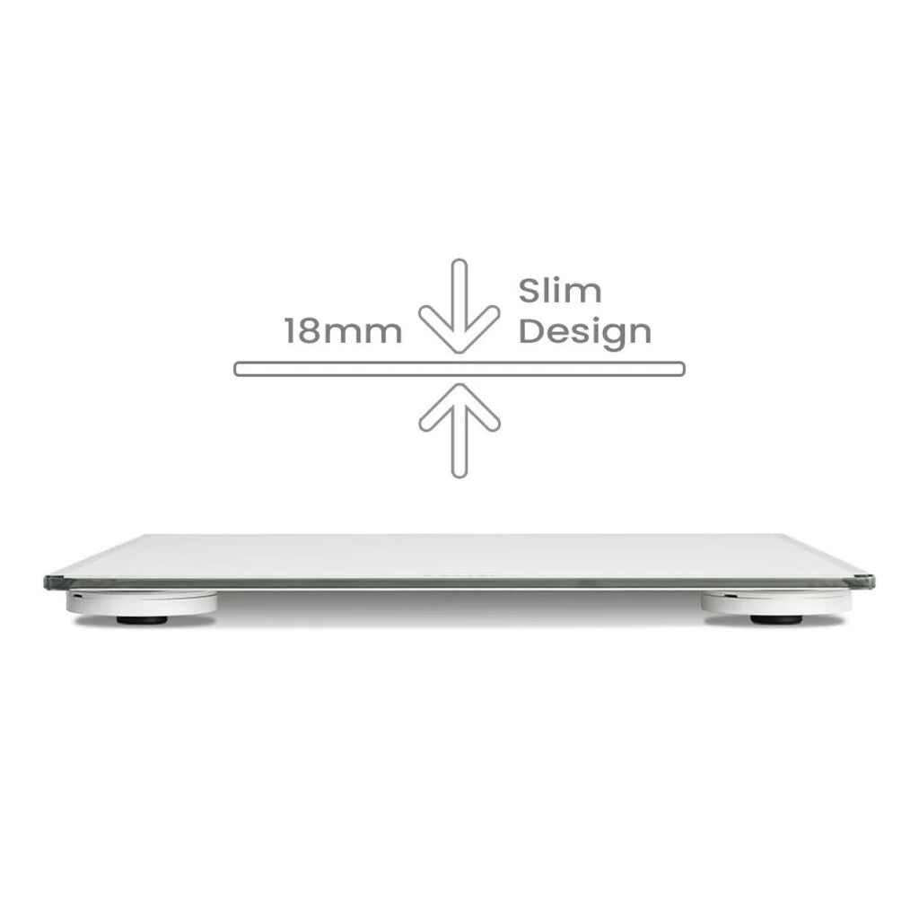The GS 120 Slim Design Bathroom Scale combines modern style and practical functionality with its sleek, mirror-finish safety glass and ultra-flat 18 mm profile. Compact yet durable, it supports up to 150 kg and fits easily into small spaces, making it an ideal, space-saving solution for daily weight monitoring. Its high-quality construction and German engineering ensure reliable accuracy, while the elegant glass surface adds a sophisticated touch to any bathroom décor.