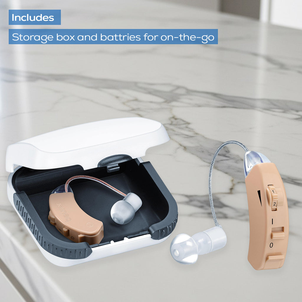 > Discreet & Comfortable Design: Lightweight, ergonomic, and barely visible behind the ear. Includes 3 earplug attachments for personalized in-ear comfort and a secure seal. Designed for people seeking a simple, effective hearing amplifier that is not bulky or noticeable.