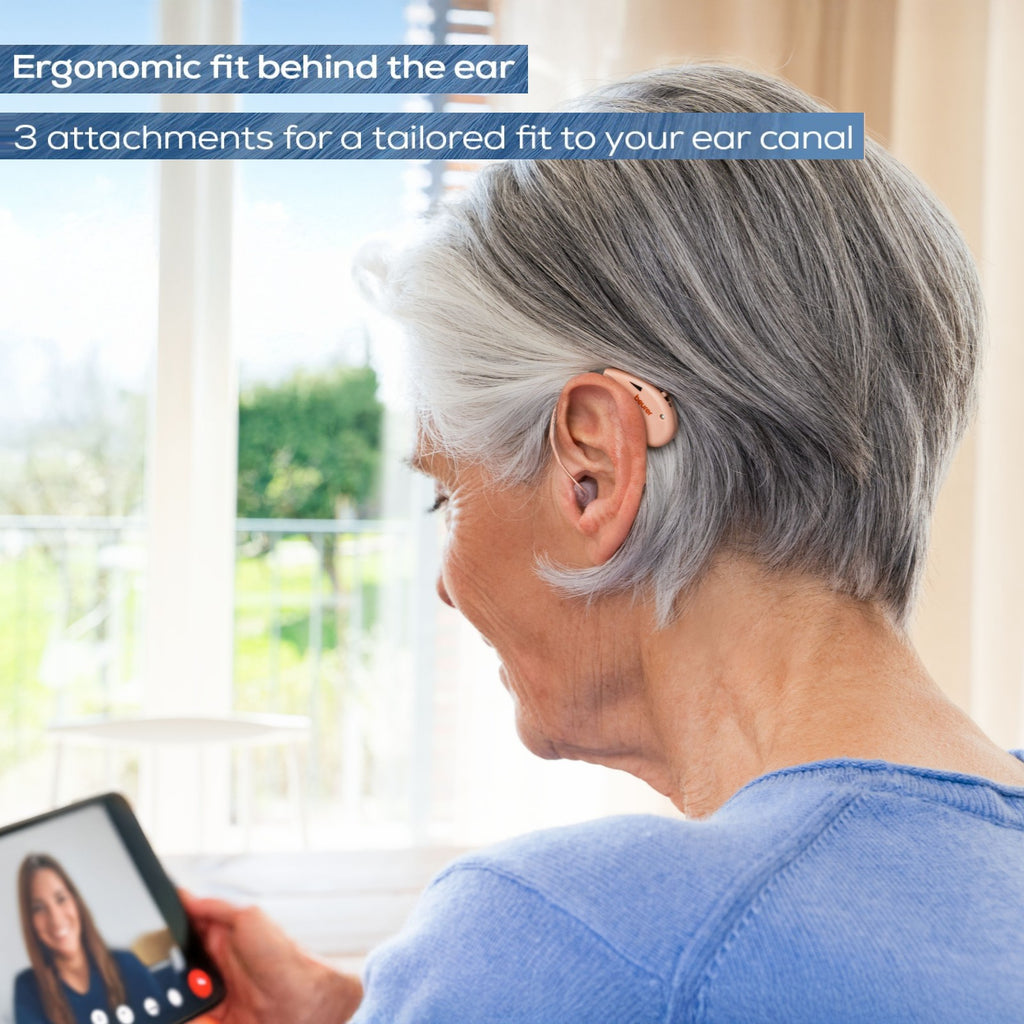 A drying capsule is included in delivery. Wearing the hearing amplifiers behind your ear means they make contact with your skin, and therefore also with sweat, for example. As a result, it is advisable that you dry the devices after each application to care for them properly. This can easily be done by placing the drying capsule with the sound amplifiers in the closed storage box.