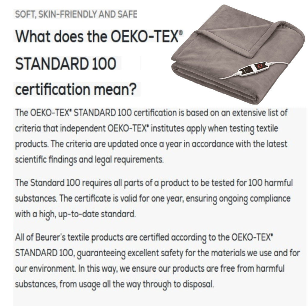The high-quality, luxurious material makes the blanket wonderfully soft and snuggly. Made with textiles certified by the OEKO-TEX STANDARD 100, the cosy fabric is warm and breathable. This standard guarantees that the material is skin-friendly and safe for you and the environment. The material used is tested annually against strict ecological standards to ensure that it is free from 100 harmful substances.
