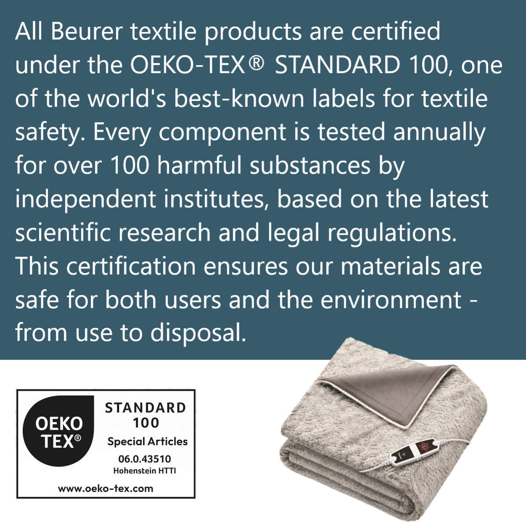 Your heated throw is equipped with the Beurer Safety System (BSS) to prevent overheating in case of misuse, securing the highest possible safety. It also features an automatic switch-off after approximately 3 hours, for your peace of mind.