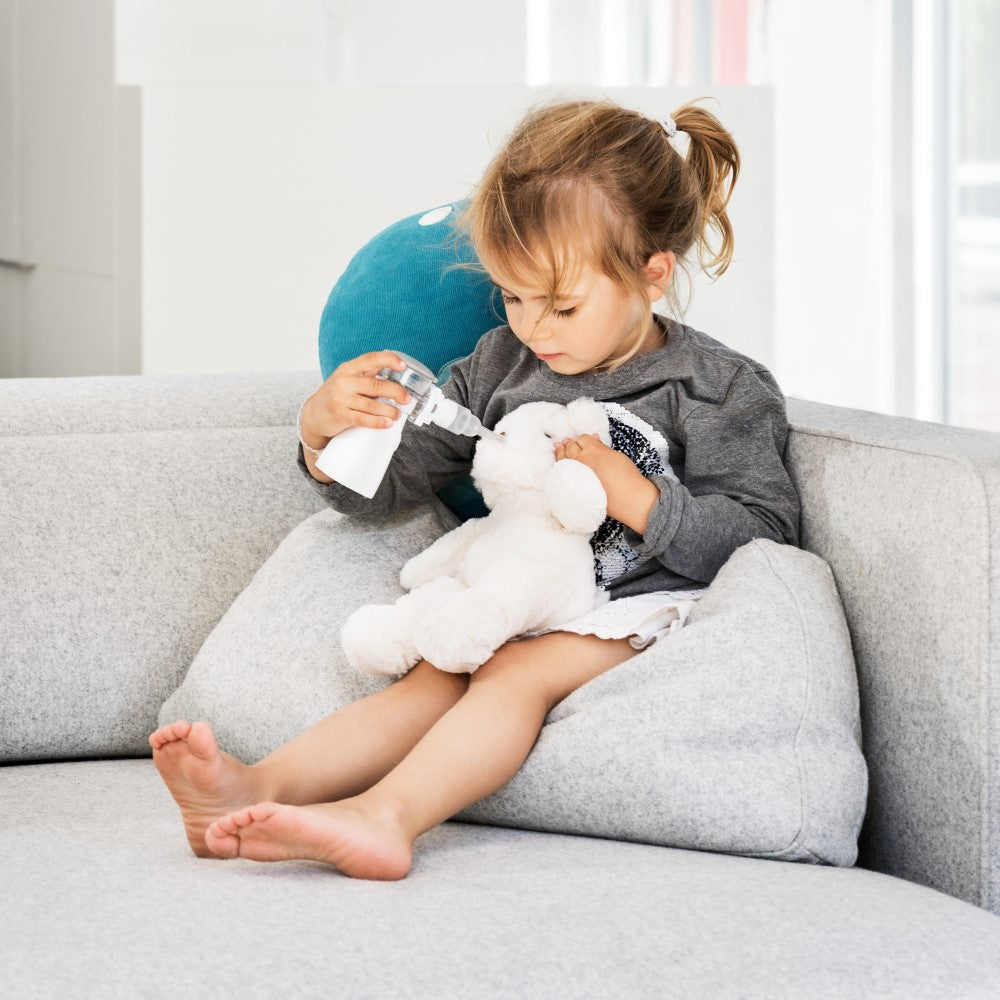 Comprehensive replacement set with a mouthpiece, adult mask, children’s mask, straps and mesh atomiser with medication container.