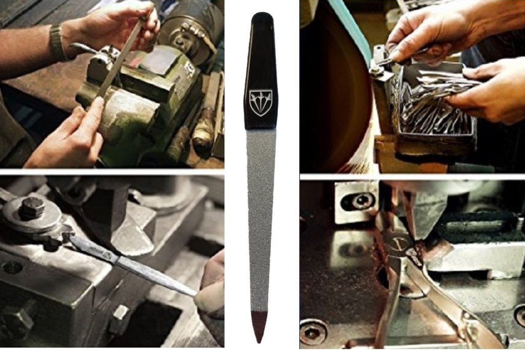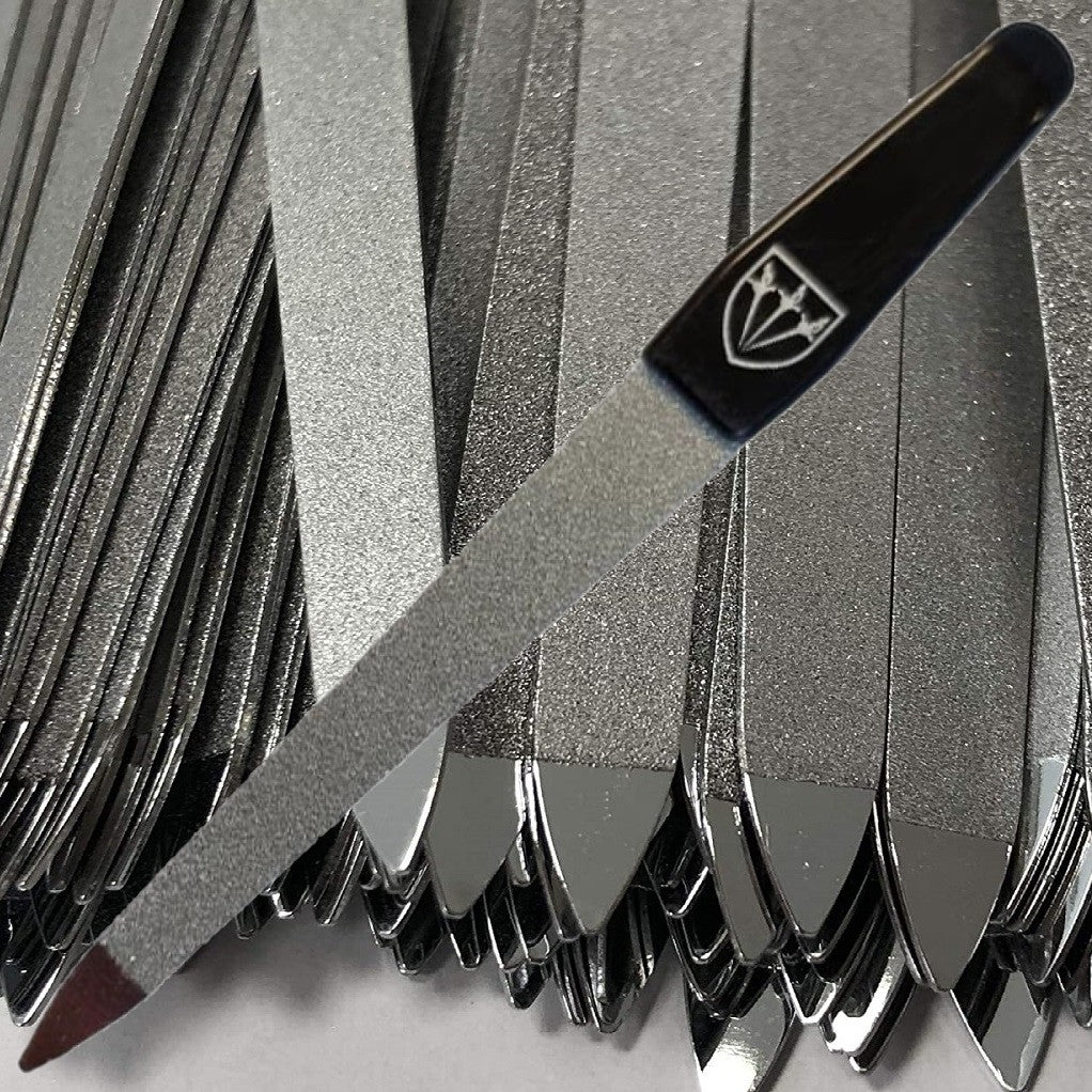Crafted from hardened stainless spring steel, featuring a sapphire-coated surface with sharp-edged abrasive particles for precise, gentle filing.