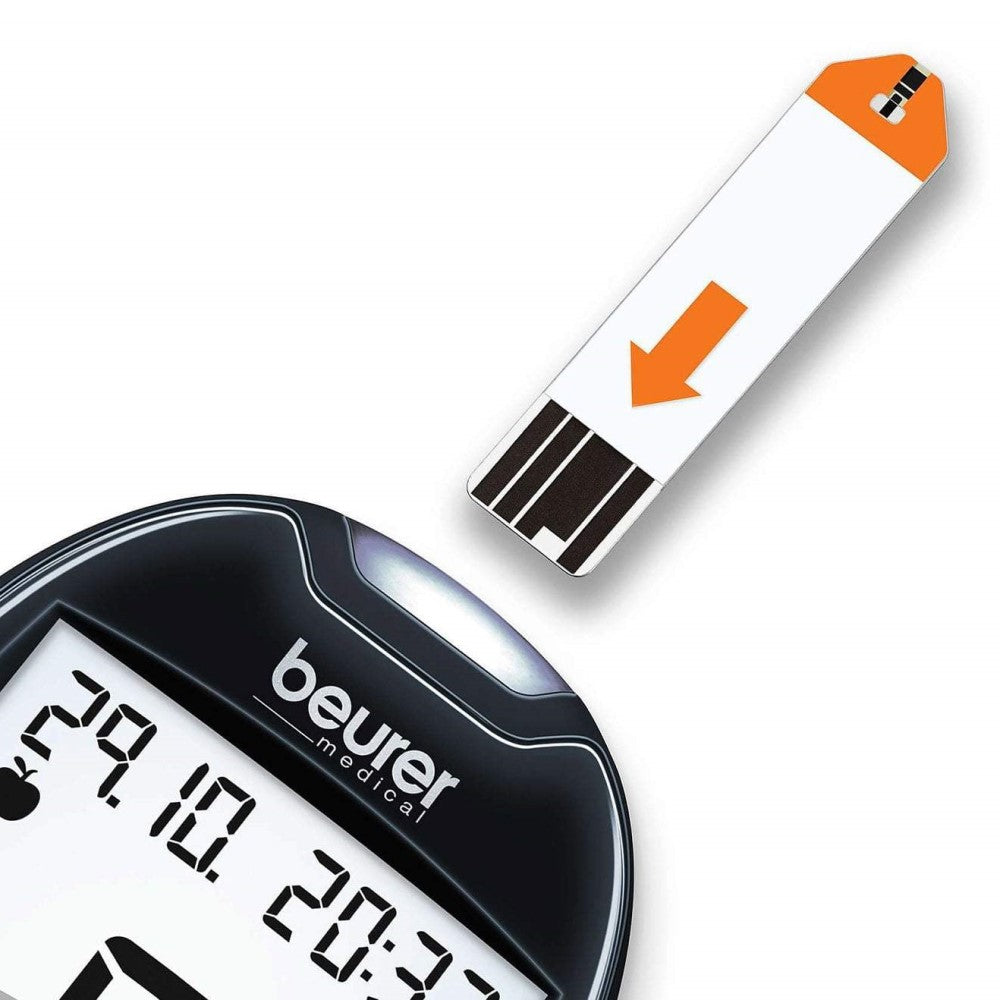 Please note that Beurer lancets, test strips, and testing devices are shown for illustrative purposes only, and are sold separately from the Beurer lancing device.