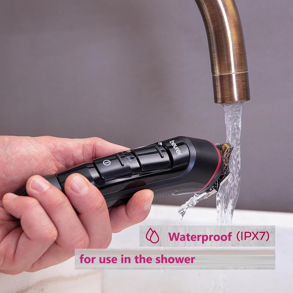 Beurer Germany MN9X rechargeable Multi Groomer for body, face and hair. Versatile, waterproof styler allows you to groom all your body hair yourself. Thanks to the high-quality attachments and different cutting lengths, everyone can find the right setting for themselves. The device is waterproof and can be used in the shower or bathtub.