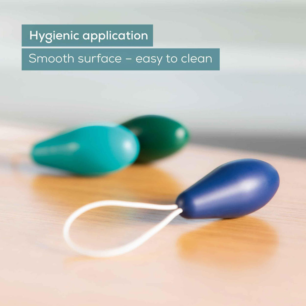 > 3 Graduated Weights (28g, 52g, 71g) for progressive pelvic floor training