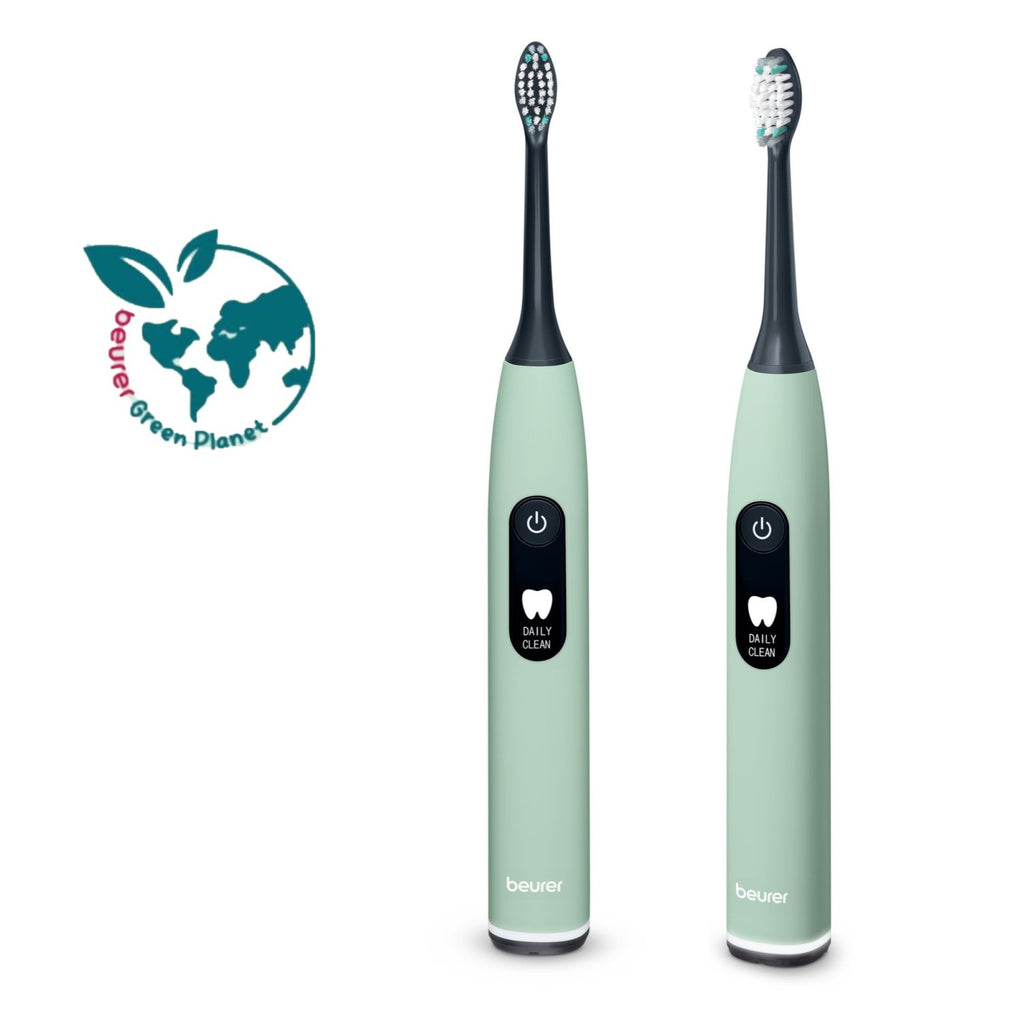 - German-engineered precision with a strong focus on sustainability and functionality. This Beurer Green Planet edition toothbrush is a conscious step toward a greener future - without compromising performance. Built from recycled and renewable materials, it reflects Beurer’s commitment to your health and the planet.