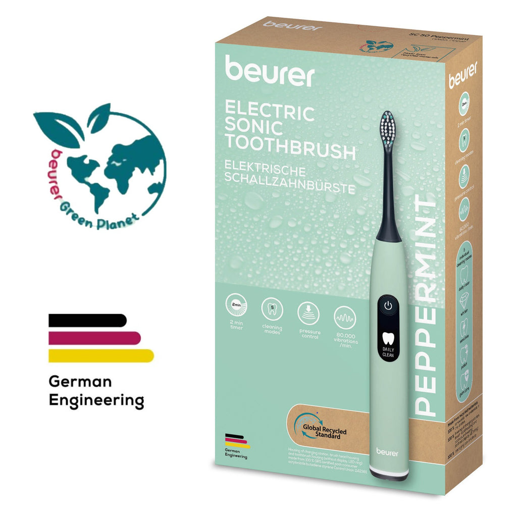 Beurer SC 50 Electric Toothbrush | Advanced Sonic Technology for Healthy Teeth & Gums | Eco-Friendly | Peppermint Green